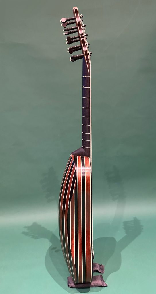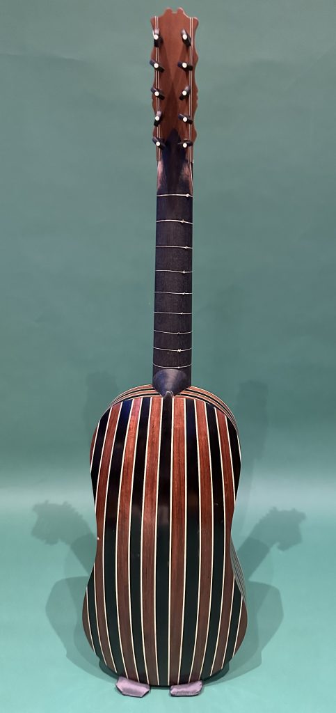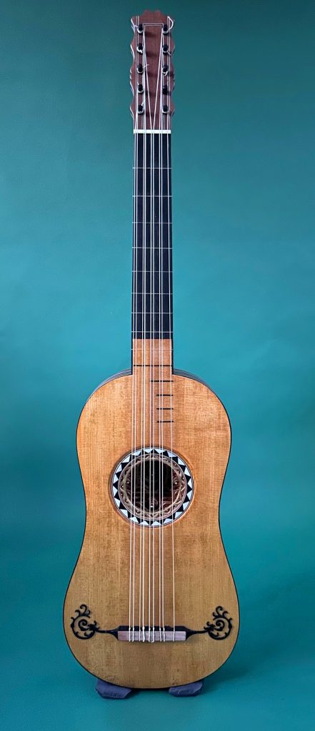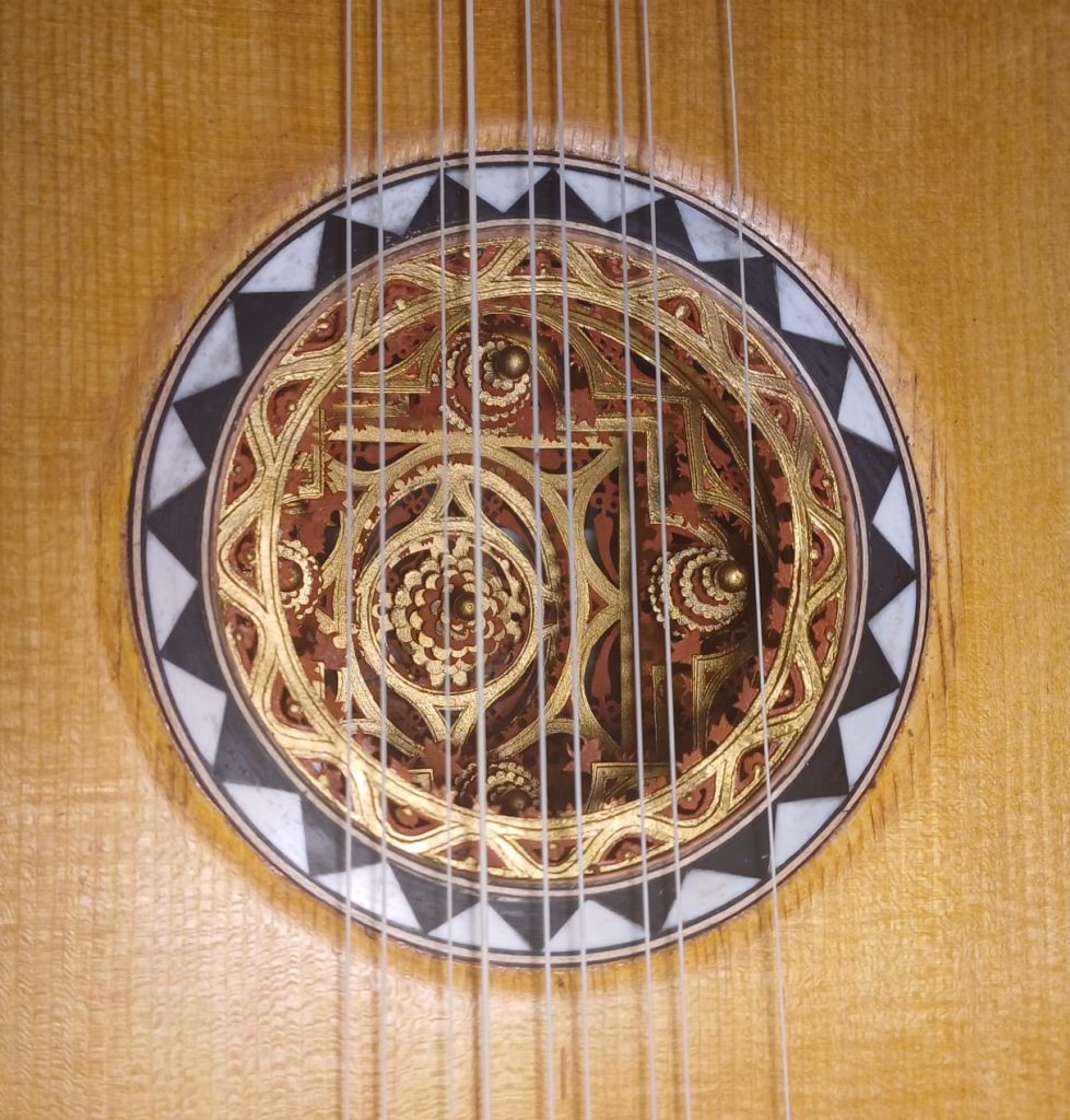 Jacopo Checchucci was a luthier operating from Livorno, Tuscany in Italy in the early 17th century. His surviving guitar dating to either 1623 or 1628 from the label, represents an early stage of the 5 course Baroque guitar being at the forefront of their evolution in both form and decoration.